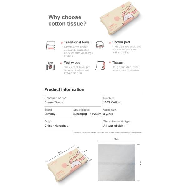 Disposable facial towel is made of high-quality plant fiber, which is sterilized and sterilized by ultraviolet light. The material is mild and will not irritate the skin. It is suitable for all skin types. No linting and can be used both dry and wet. The product has the advantages of small volume, light weight, easy storage or carrying, and is suitable for home or travel use.